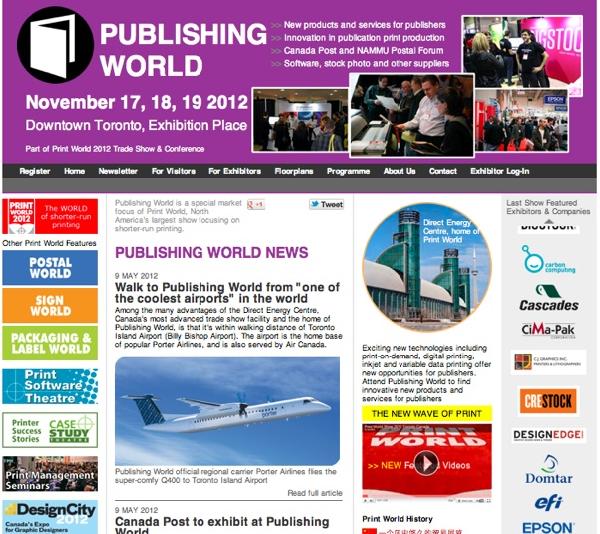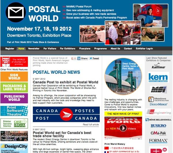 Each site highlights Print World features and exhibitors relevant to the market focus. For example, Canada Post is exhibiting for the first time at Print World 2012, and will also be featured on Postal World and Publishing World. PDS Pressdown, which markets digital, four-colour envelope printers, will be highlighted on Print World and Postal World.
